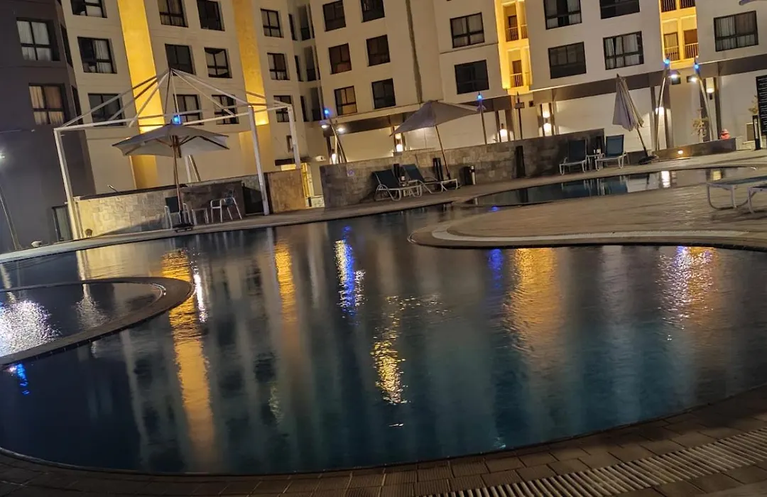 The spacious 200 m² Shka Doblox Haa Lox Kombond Niom Borto Kairo Llaaelat Fkt is at a distance of 3.3 km from Arabic Language Institute and boasts spa facilities such as a plunge pool. At a distance of 3.3 km from the 3-bedroom apartment you will find Gate 9, Al Rehab City.